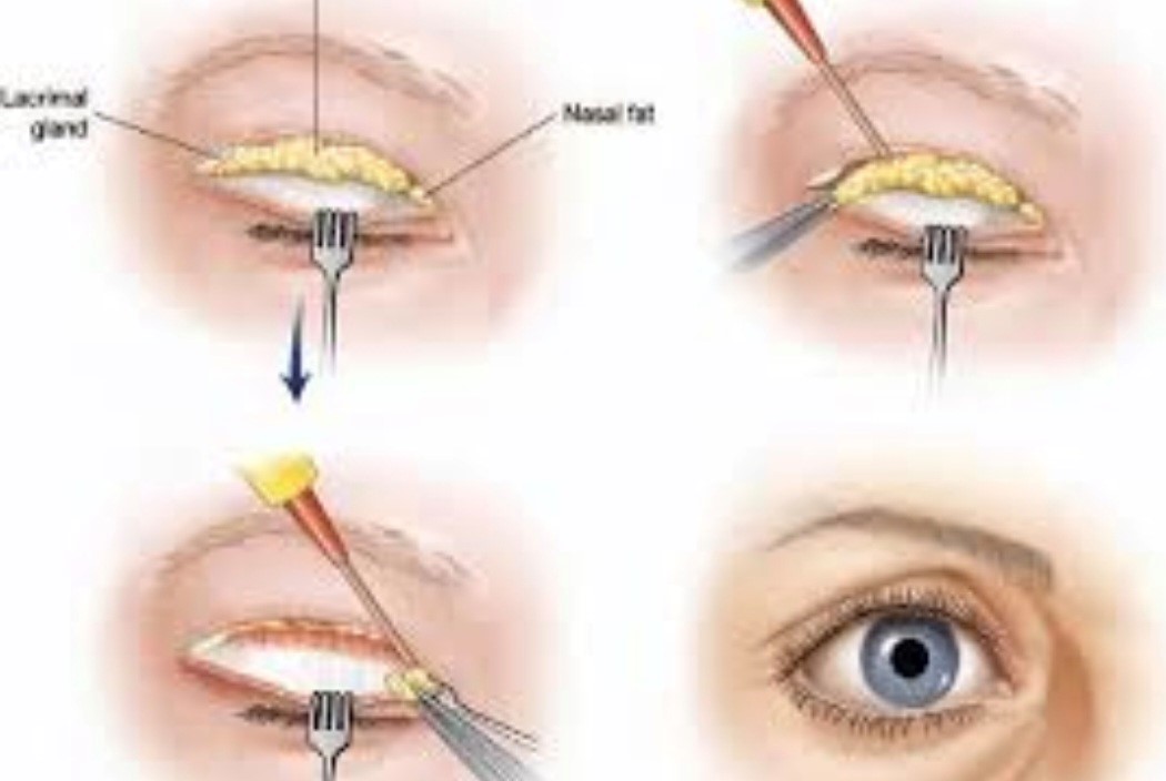 در بلفاروپلاستی پلک پایین برش از داخل پلک داده می شود اگر نیاز به برداشتن پوست اضافه باشد برش از زیر خط مژه ها داده می شود که بعدا محو خواهد شد.